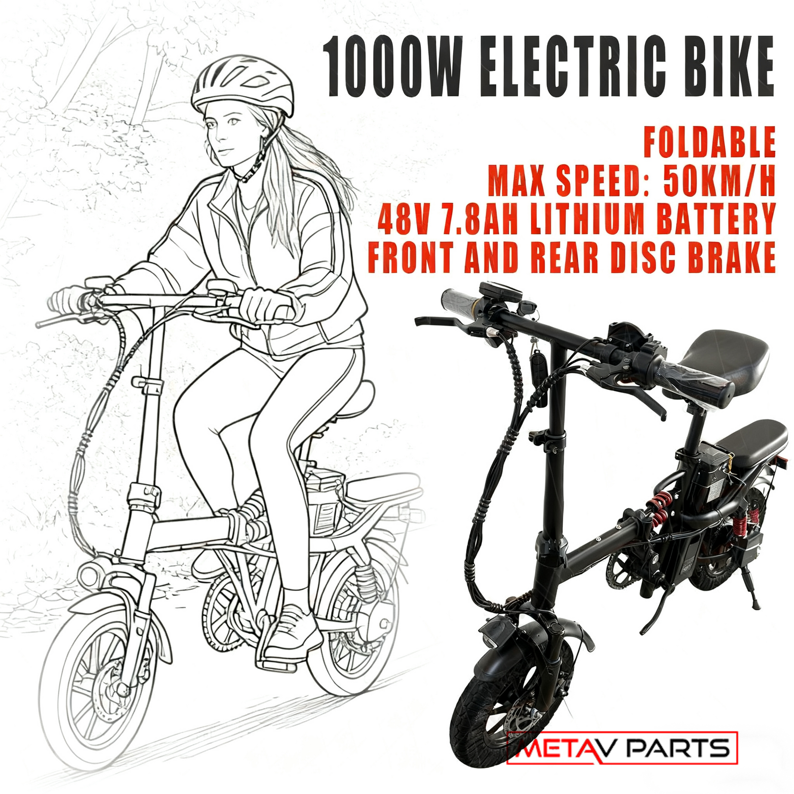 Foldable Electric Bike 1000W 50KM/H Protable Commuter Travel Bicycle E-Bike 48V
