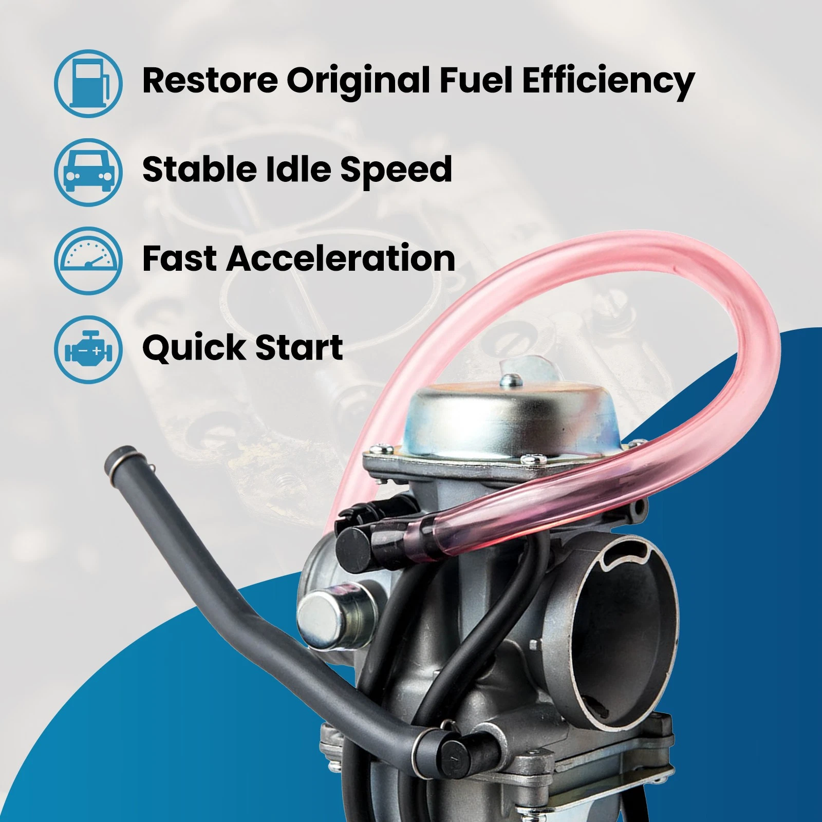The oil channel of carburetors will be blocked without cleaning.Please clean up the oil channels and air filters as well as use the clean fuel before installing the carburetors.