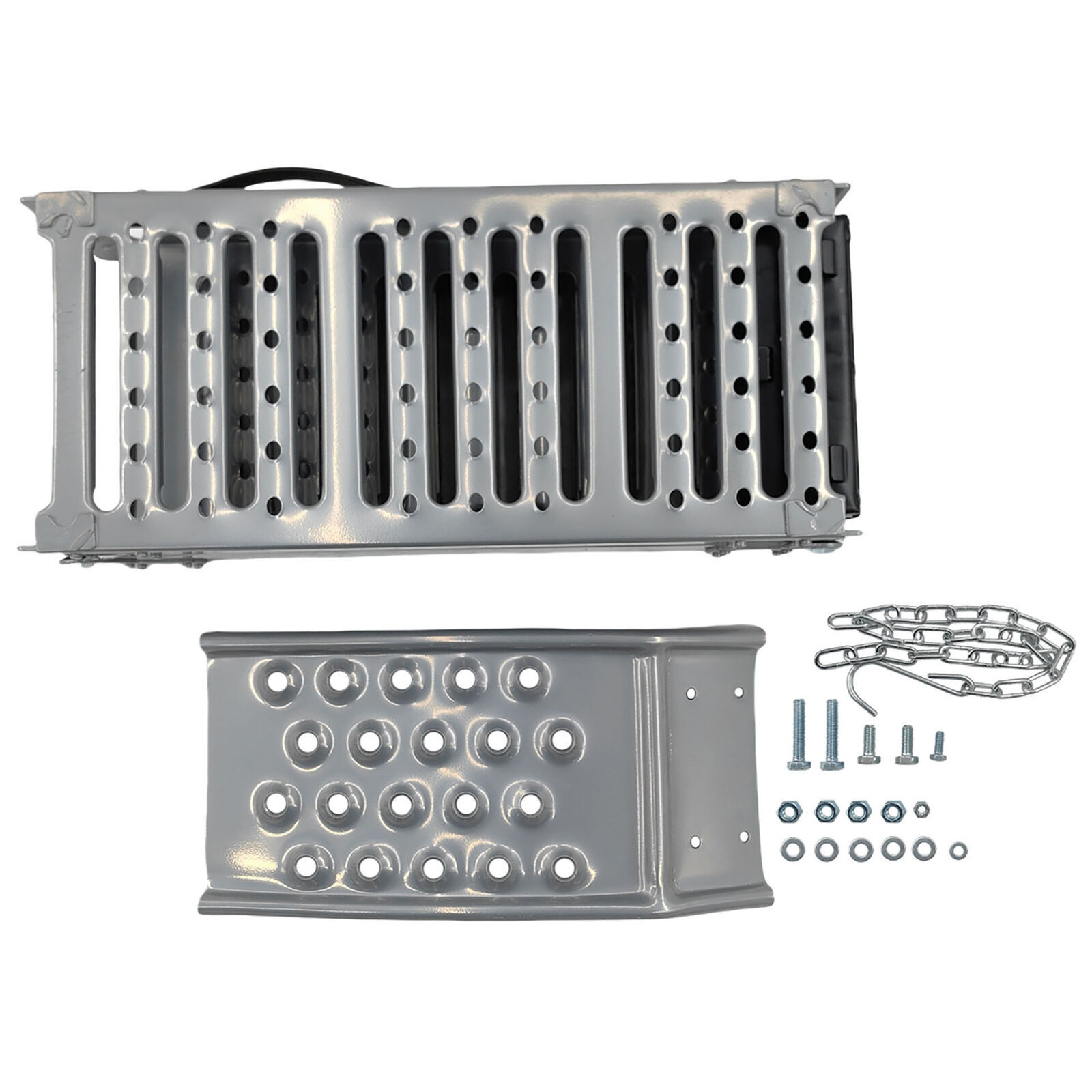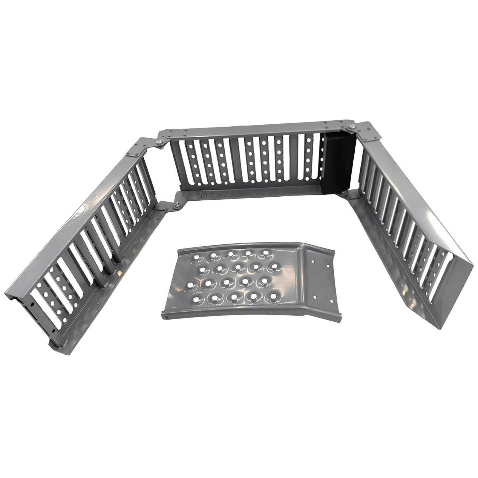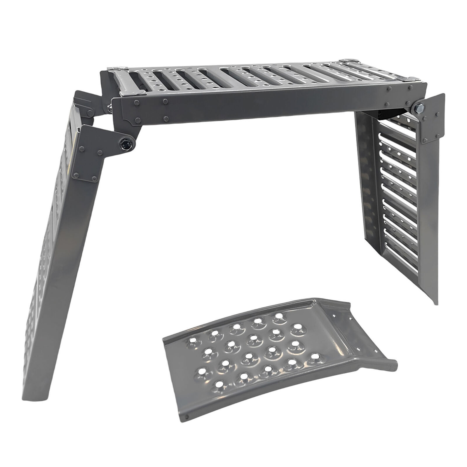2-In-1 Multi-Use Steel Foldable Ramp Set Helps Safely Load And Unload Equipment Into Your Vehicle. Dual Purpose Ramp For Loading Or Elevation.